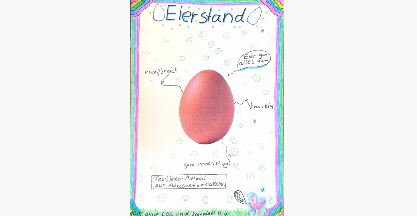 Dabei entstand ihre eigene Idee, die Eier unserer Schulhühner zu nutzen und direkt an der Schule zu verkaufen. Die Kinder erkannten selbst: Kurze Wege sparen CO2, vermeiden Verpackung und sind besser für das Klima.